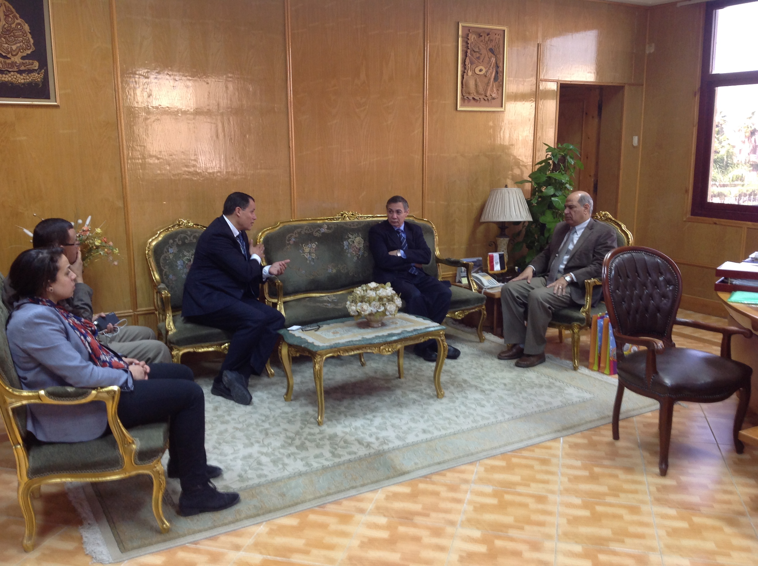 أستقبل أ.د/ ماجد القمرى رئيس جامعة كفر الشيخ السيد الدكتور /عادل الموافى –العالم المصرى ومدير مركز أبحاث الإستزراع والإنتاج والتصنيع السمكى بالنرويج.